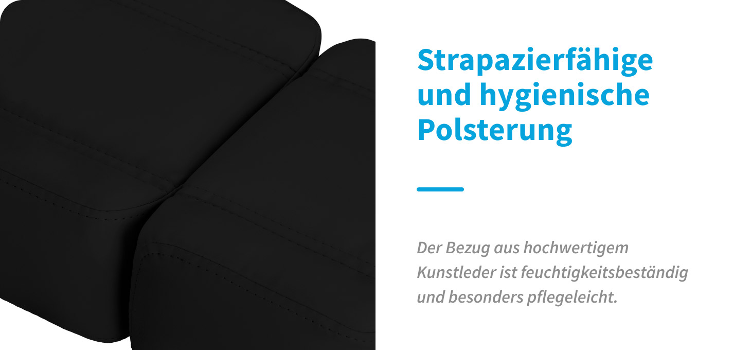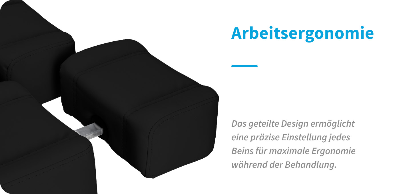 Ein Liege, der ideal für die Arbeit von Podologen geeignet ist