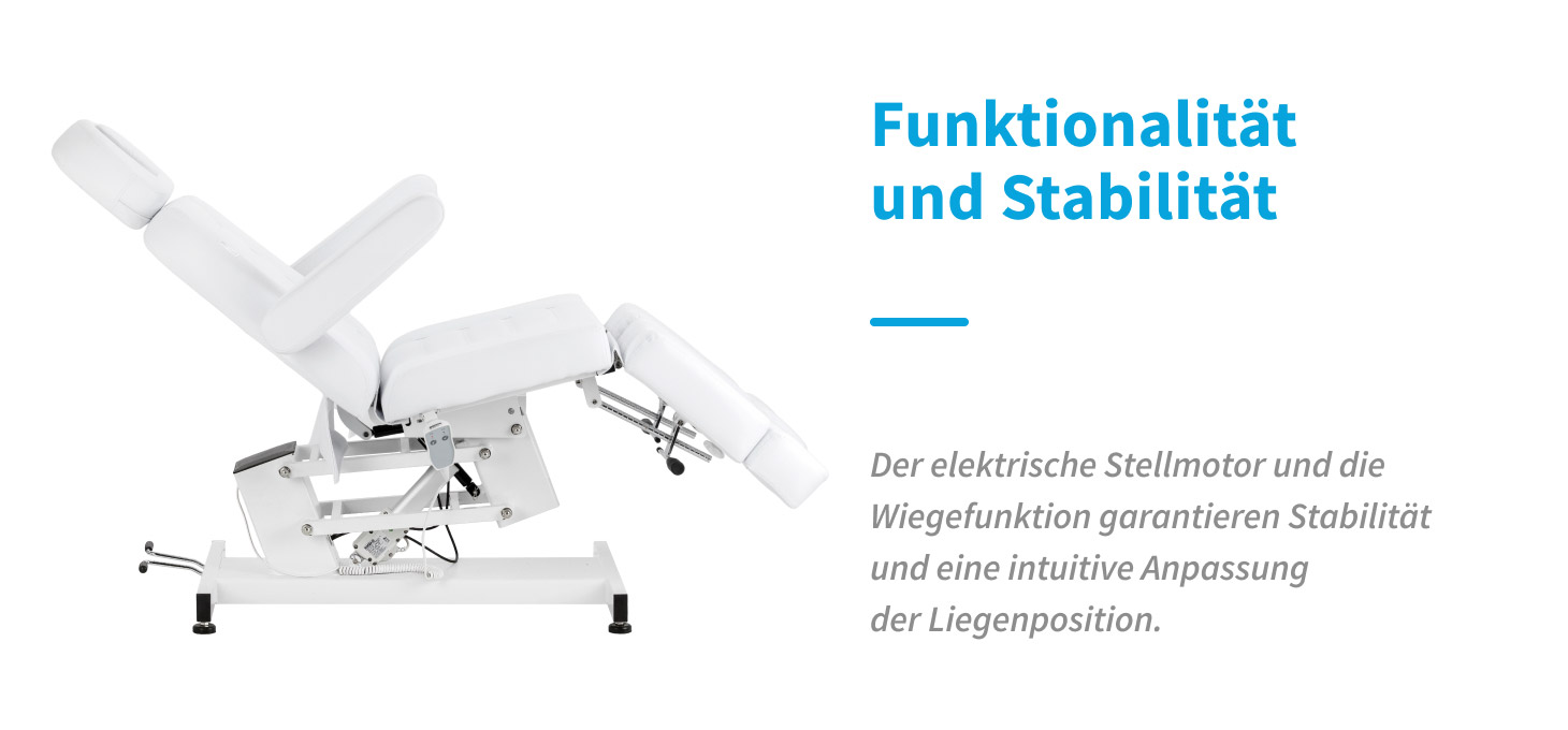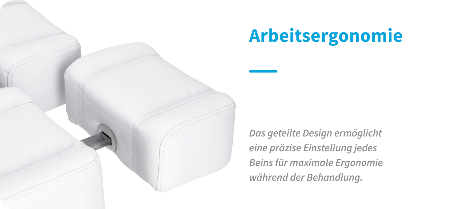 Ein Liege, der ideal für die Arbeit von Podologen geeignet ist