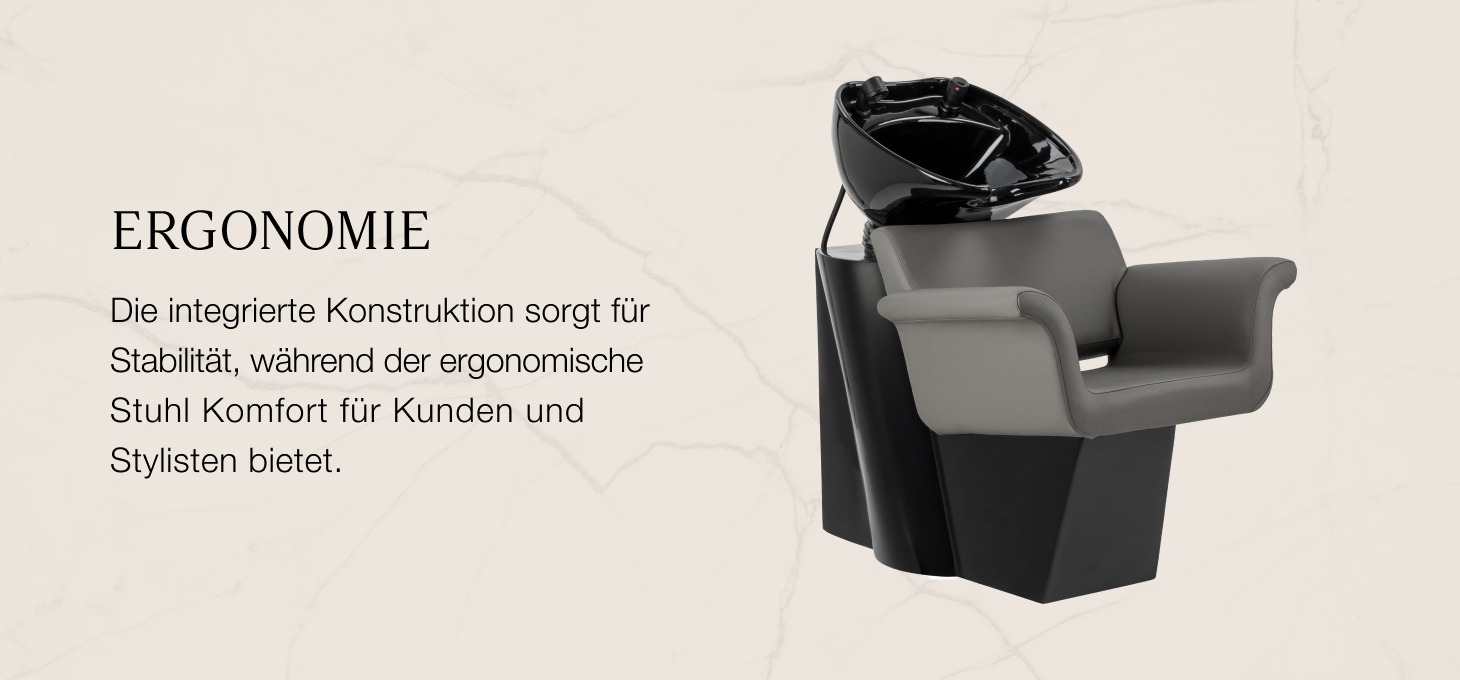 Der Friseurwaschstuhl Gabbiano Lucca vereint zeitlose Ästhetik und Funktionalität und fügt sich perfekt in die Einrichtung moderner Salons ein. Die integrierte Konstruktion sorgt für Stabilität, während die ergonomische Form des Stuhls den Komfort für den Kunden und die Arbeitsbedingungen für den Friseur gewährleistet. Der ergonomische Sitz mit bequemer Rückenlehne und stilvollen Armlehnen sorgt für Komfort während der Behandlungen, und dank des modernen, minimalistischen Designs fügt sich der Stuhl perfekt in die Einrichtung sowohl klassischer als auch zeitgenössischer Salons ein.