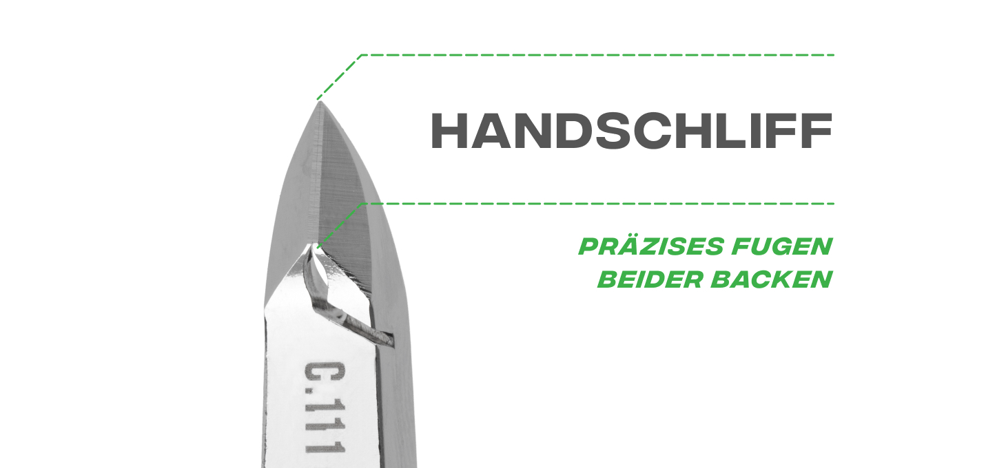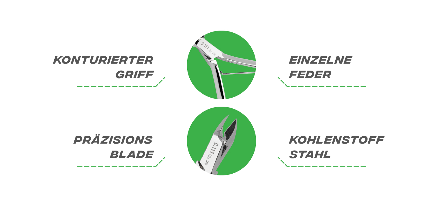 Die 8 mm langen Klingen sind perfekt für komplizierte Manikürebehandlungen. Das abgeschrägte Profil und die richtige Größe erleichtern die Durchführung komplizierter Behandlungen. Die Backen der Zange sind mit der Lap Joint-Methode verbunden, so dass sie bei der Anwendung perfekt ineinander greifen und ein präziser Schnitt gewährleistet ist. Die Zange hat einen passenden Klingenschutz aus robustem Kunststoff.